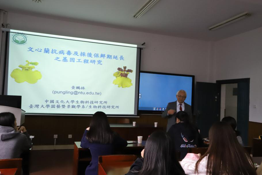 应林学院的邀请,台湾中国文化大学农学院院长,黄鹏林教授于10月22日-24日为林学院师生作了题为“文心兰抗病毒及采后保鲜期延长之基因工程研究”和“创新的第一里路”的两场学术报告。学院师生共70余人参加了本次学术报告会,本次学术报告会由林学院园艺系主任唐丽教授主持。