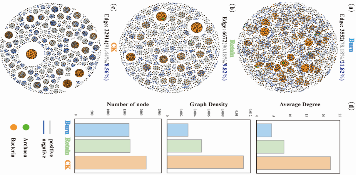 本研究首先利用单因素方差分析揭示了焚烧采伐剩余物会显著降低土壤的有机质、有效硼和有效磷以及细菌和古菌群落的α多样性。此外,利用置换多元方差分析我们发现三种不同的林分的β多样性之间具有显著性差异。通过共现性网络分析,我们探究了不同林分中细菌和古菌群落物种共存的模式以及潜在微生物互作的情况,我们发现焚烧采伐剩余物的桉树人工林的网络节点以及互作边是最低的,并且对网络进行鲁棒性分析发现其的稳健性最差。我们还发现保留采伐剩余物的桉树人工林的微生物网络稳定性尽管高于焚烧采伐剩余物的桉树人工林但是远低于原生植被的微生物网络的稳定性。为了探究影响细菌和古菌α和β多样性的因子我们利用随机森林模型和冗余分析以及结构方程模型共同揭示了土壤容重,有机质和有效磷是共同影响土壤细菌和古菌群落α和β多样性的因子。