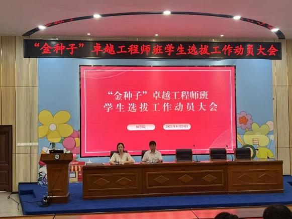 为深入贯彻党的教育方针,落实立德树人根本任务,响应学校选拔拔尖创新人才的号召,林学院于6月24日下午在报告厅召开“金种子”卓越工程师班学生选拔工作动员大会,此次动员会针对2023、2024级本科学生分为两场进行。学院领导、辅导员以及相关专业学生参加了本次动员会。