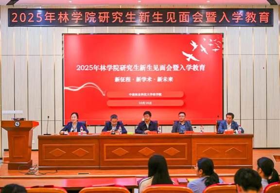 10月16日下午,林学院2025级研究生入学教育会议在学院001报告厅举行。会议由陈慧慧副书记主持,袁德义院长、袁军副院长、李家湘副院长、优秀导师代表邹锋教授及研究生秘书欧阳娜娜、辅导员王佩兰、季恩琼出席,围绕学术规划、培养体系、校园安全三大板块为新生答疑解惑。