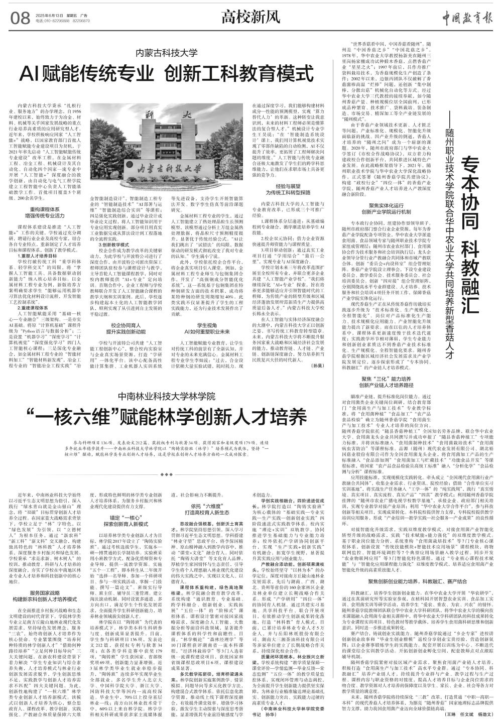 参与科研项目136项、发表论文212篇、获授权专利与软著34项、获得国家和省级奖项179项、连续多年就业率稳步提升……中南林业科技大学林学院以“陶铸实验班(林学)”培养模式为载体,坚持“一核六维”驱动,赋能林学类专业创新人才培养,这是学校在创新人才培养方面的一次成功探索。