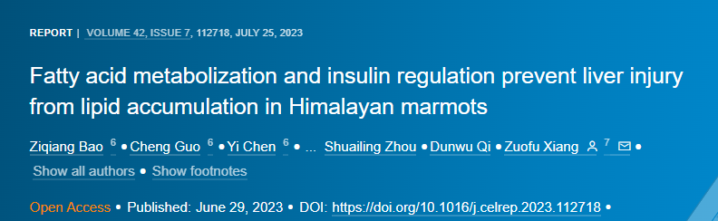 近日,林学院向左甫教授团队以封面故事在《Cell Reports》发表题为Fatty acid metabolization and insulin regulation prevent liver injury from lipid accumulation in Himalayan marmots的研究论文,解释了喜马拉雅旱獭在活动期积累脂肪的同时如何保护肝脏免受脂肪异位积累造成损伤的作用机制。